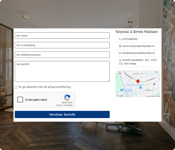 Bij Korporaal & Bertels sta je nooit alleen. Onze NVM makelaars combineren jarenlange ervaring in Den Haag en omgeving met eerlijke, duidelijke begeleiding. Of het nu gaat om verkoop, aankoop of taxatie: we nemen de tijd, signaleren aandachtspunten en houden je bij elke stap goed geïnformeerd. Zo weet je precies waar je aan toe bent.