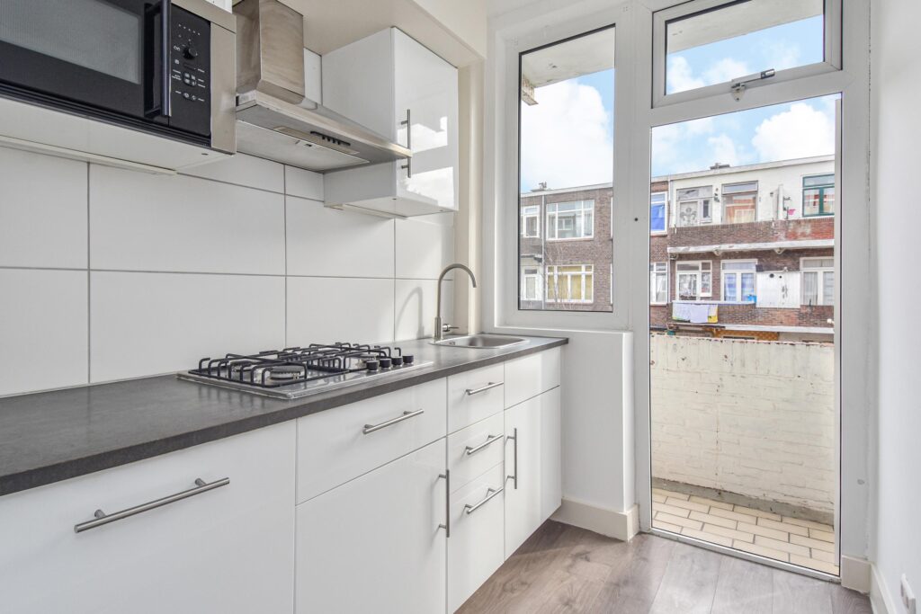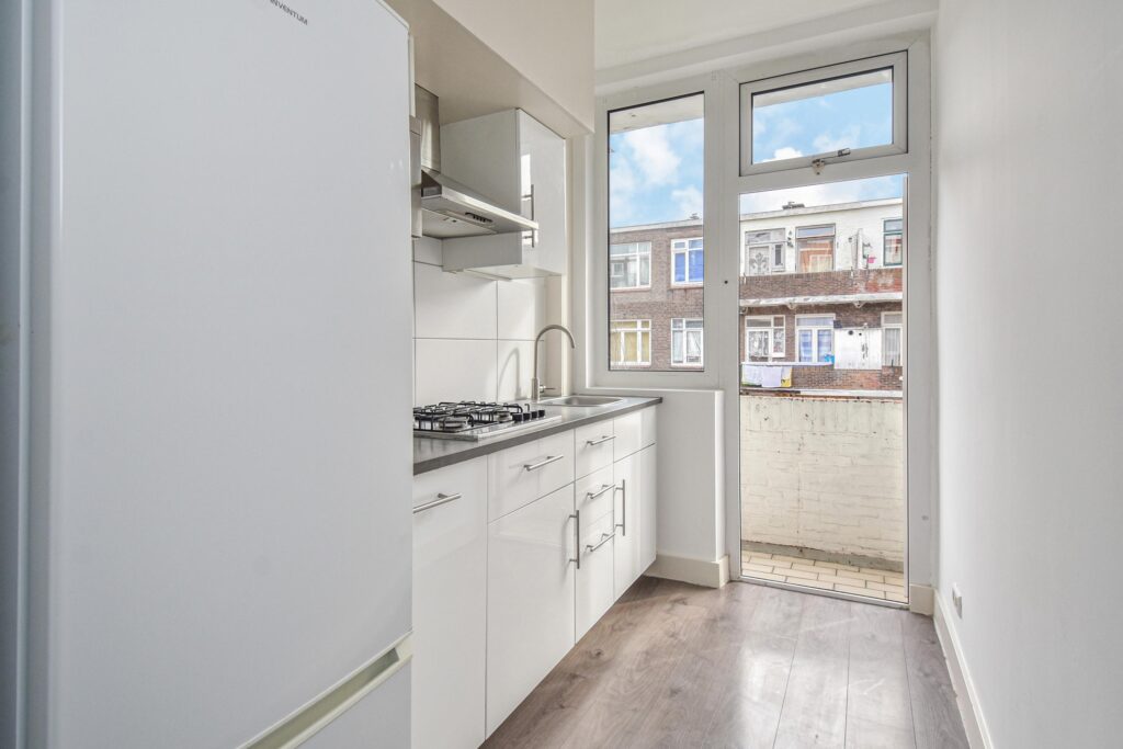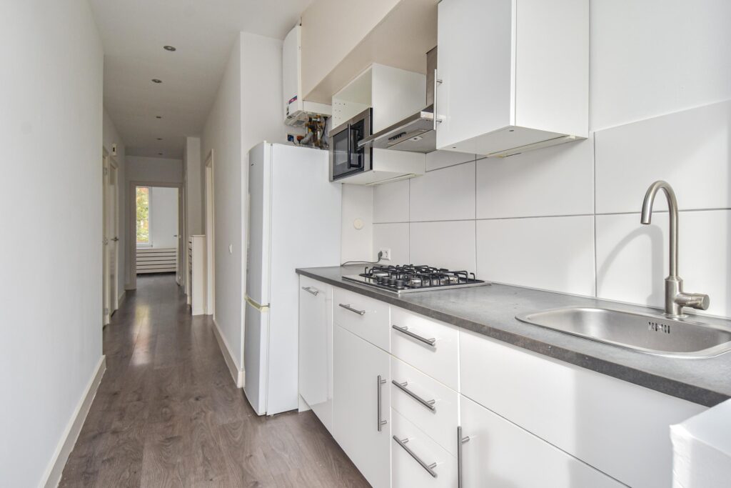 Aan een doorgaande woonstraat gesitueerd 4-kamerappartement op de 1e etage met een moderne inrichting, 3 slaapkamers en een eigen balkon. Het goed geïsoleerde appartement is in 2017 geheel gemoderniseerd en is gunstig gelegen nabij divers winkelaanbod, een ruim aanbod aan openbaar vervoersverbindingen en op korte afstand van de Haagse Hoge School. Indeling van de woning: Entree via een open portiek, trap naar de 1e etage, entree woning, gang met een laminaatvloer doorlopend in het appartement, vaste kast met de meterkast, toilet, moderne badkamer met een inloopdouche, een vaste wastafel met meubel en de aansluiting voor de wasmachine, slaapkamer aan de voorzijde, woonkamer aan de voorzijde, ruime slaapkamer achter, keuken met een moderne inrichting voorzien van diverse apparatuur waaronder een 4-pits kookplaat, een afzuigkap, een magnetron, een vaatwasser en een koel-/ vriescombinatie, opstelplaats van de cv-combiketel, deur naar het balkon, 2e slaapkamer aan de achterzijde Bijzonderheden: - eigen grond - actieve VvE, bijdrage thans... Lees meerKenmerken
