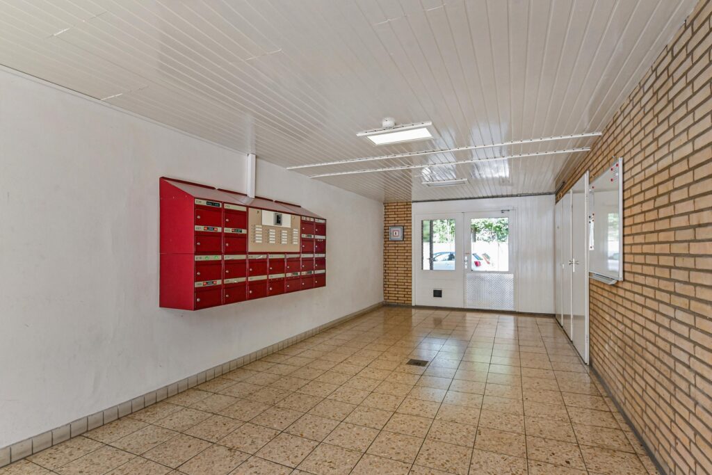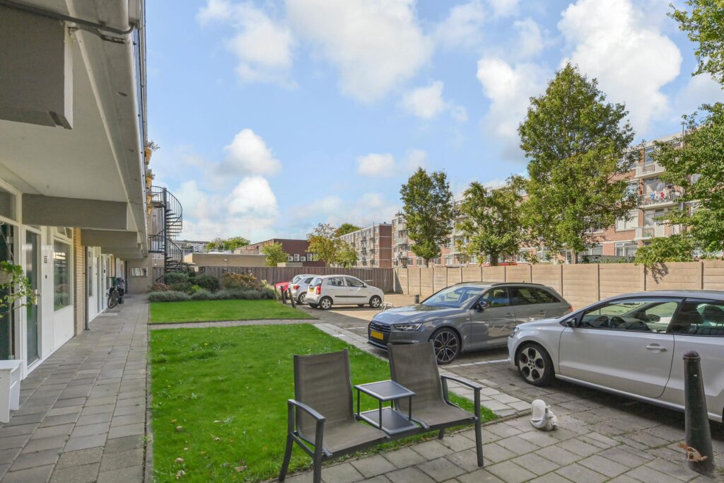 Berging op de begane grond en gemeenschappelijk parkeerterrein voor bewoners.