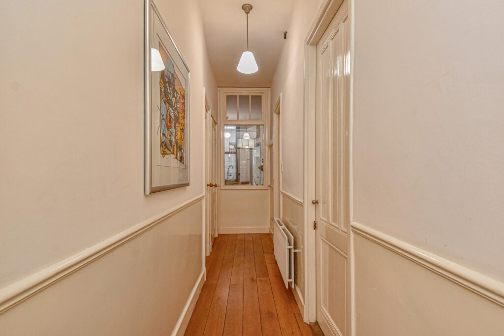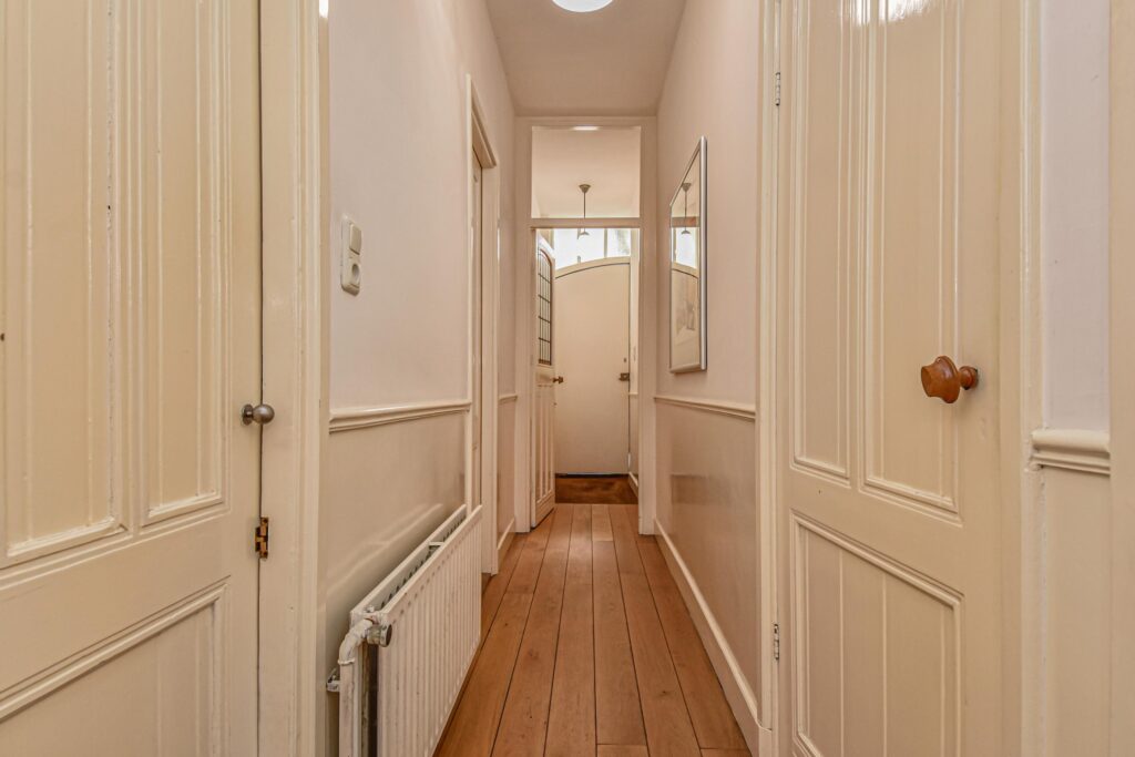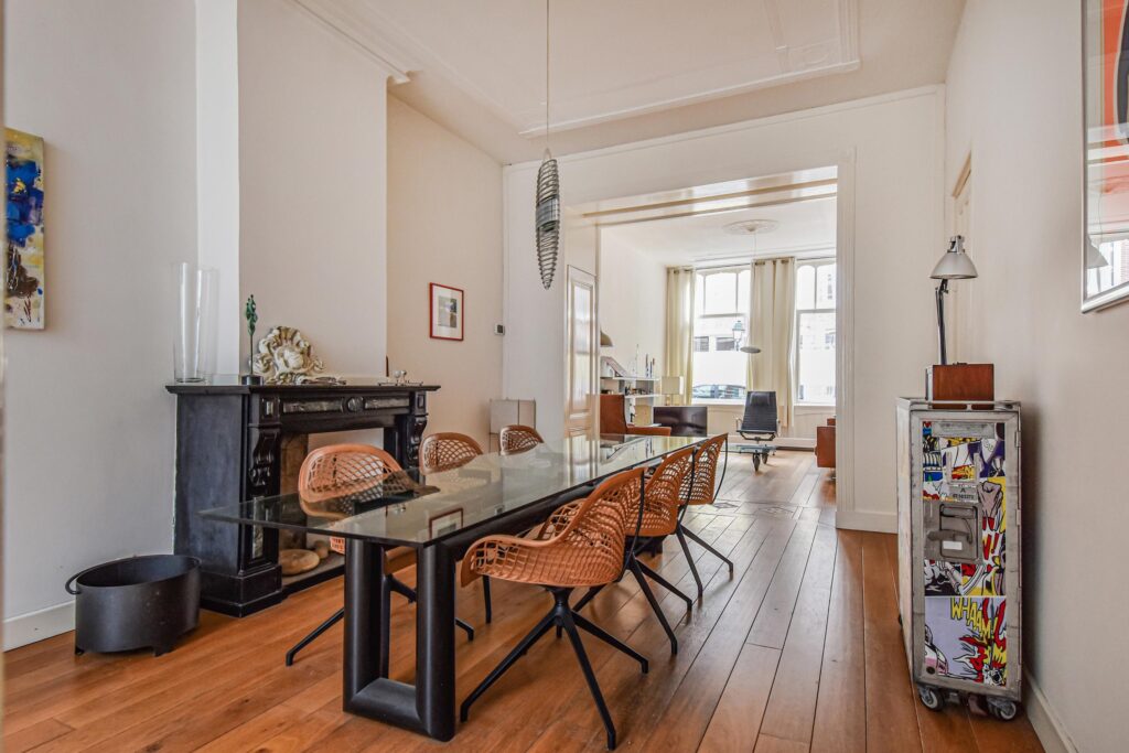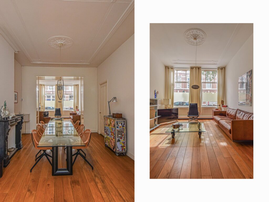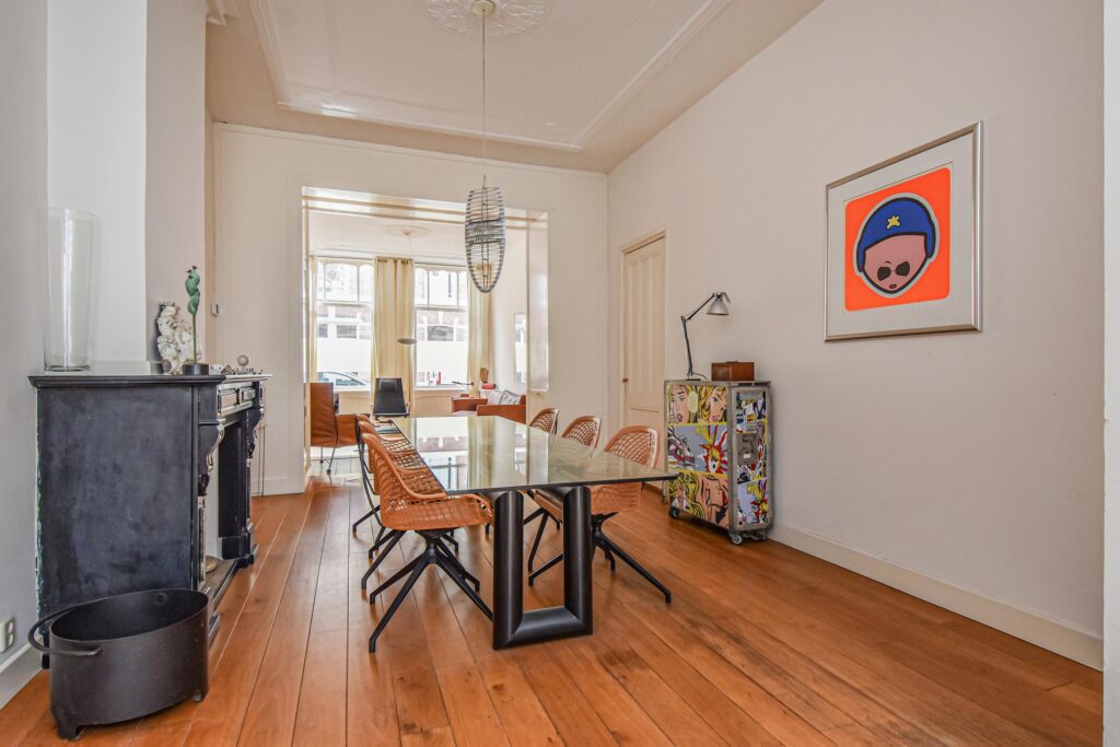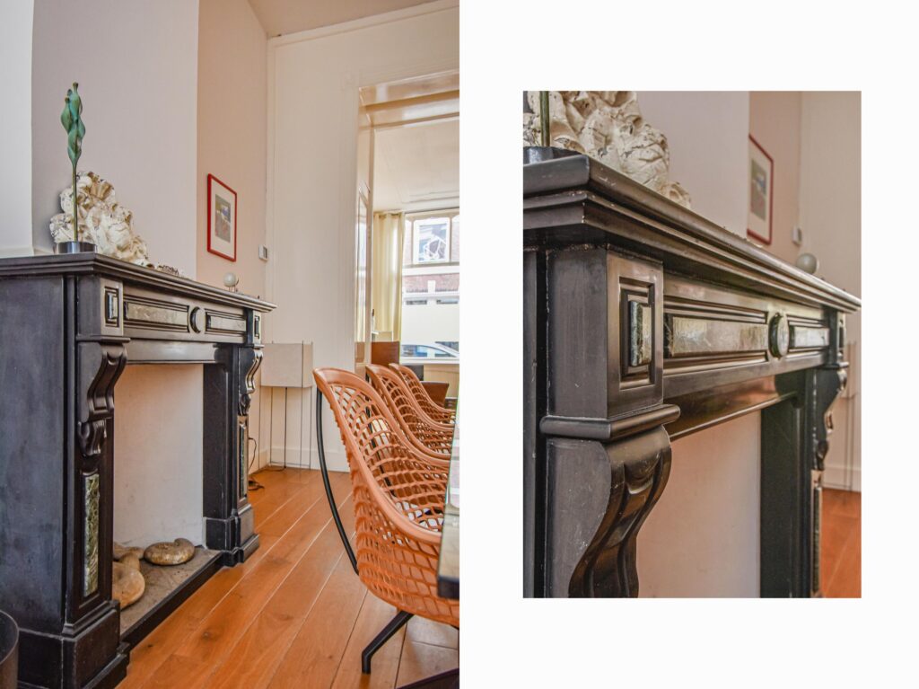 Veel stijldetails zijn nog bewaard gebleven, zoals de karakteristieke voordeur, de suiteseparatie en lijstenplafonds van ruim 3 meter hoog.