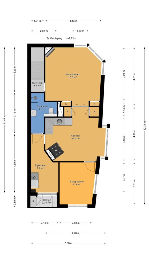 Gelegen in de levendige wijk Kortenbos, op steenworp afstand van het Haagse stadscentrum, bevindt zich dit karakteristieke hoekappartement aan de Oude Boomgaardstraat 2. Deze woning biedt een unieke kans voor wie op zoek is naar een (klus)appartement met potentie, in een omgeving waar alles binnen handbereik is. Locatie De Oude Boomgaardstraat is een rustige straat in het hart van Den Haag, ideaal gelegen nabij winkels, restaurants, openbaar vervoer en culturele voorzieningen. Met het bruisende stadscentrum op loopafstand geniet je van het gemak van stedelijk wonen, gecombineerd met de charme van een rustige woonomgeving. Indeling: Open portiek met trap naar de eerste etage, entree via hal met meterkast en binnentrap naar de tweede etage, woonkamer met suiteseparatie naar de eetkamer met open keuken voorzien van vaatwasser, gasfornuis en afzuigkap, slaapkamer aan de achterzijde, badkamer met wastafel, douche en toilet, hal naar bijkeuken/wasruimte met cv-ketel en toegang tot beknopt balkon met balkonkast. Bijzonderheden: * eigen grond * VVE is... Lees meerKenmerken